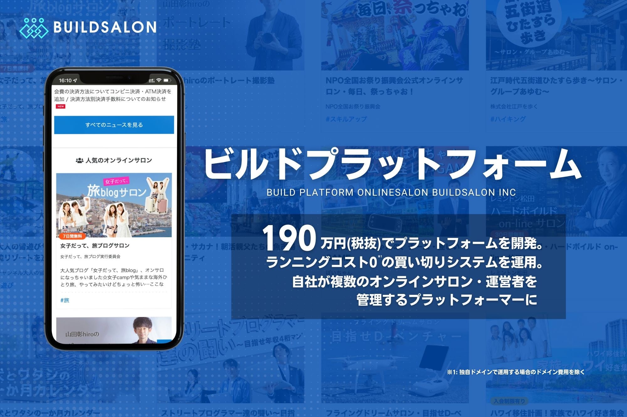 法人向け買い切り制オンラインサロン制作・開発業務を専門で承る株式会社ビルドサロン(本社:東京都新宿区、 代表取締役:上村 十勝)は、2023年3月5日、オンラインサロンのプラットフォームを自社で所有・運用できる「オンラインサロンプラットフォーム開発サービス」の開発パッケージの販売を開始しました。