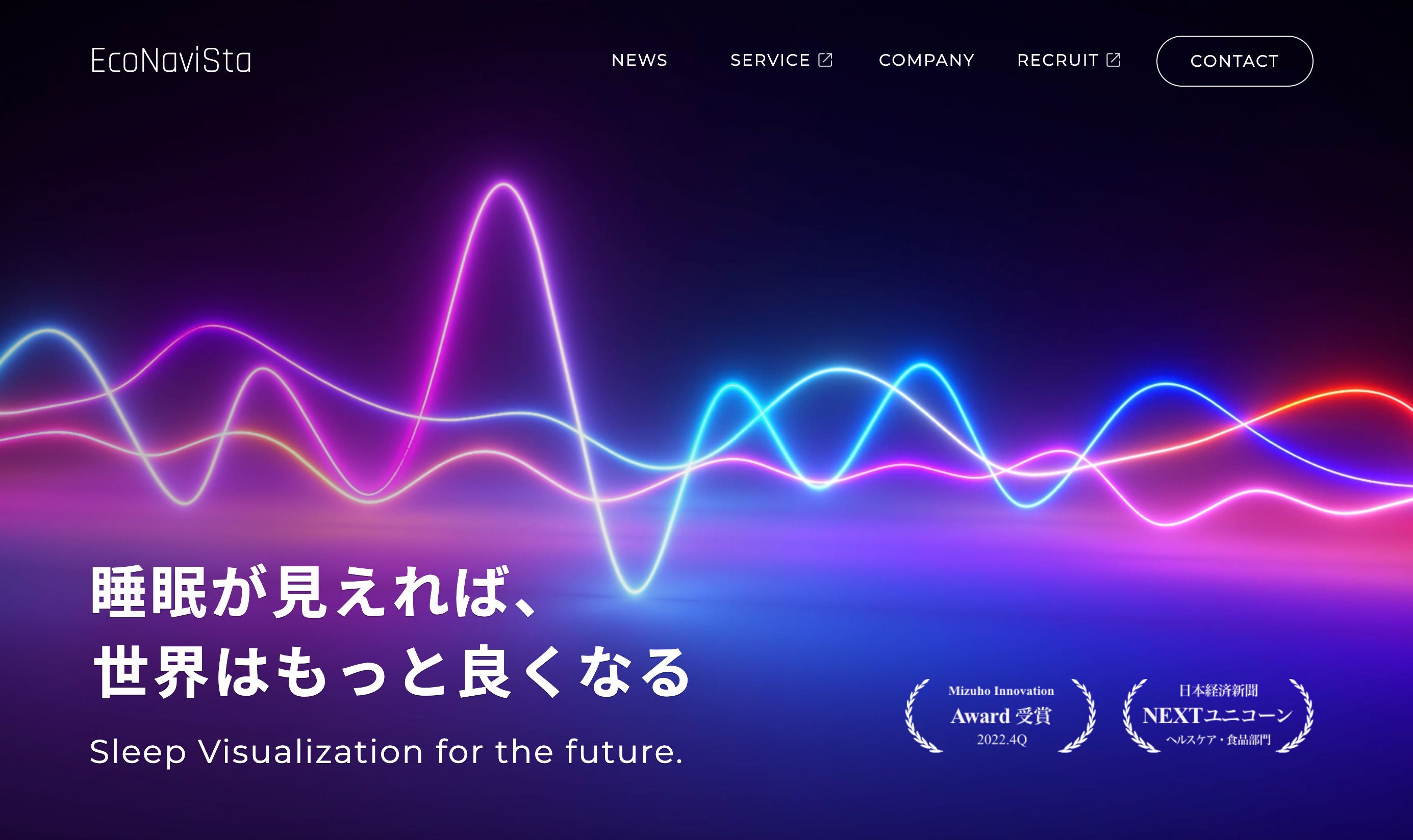 そしてこの度、事業を通じて培ったビッグデータと睡眠解析技術、そこから生み出される当社独自の各種AI開発など、睡眠の可視化と価値化をさらに進化させ、皆様と共にヘルスケアなど様々なフィールドへ事業を拡大し、多様化する社会のニーズに応えていきたいという想いを込め「睡眠が見えれば、世界はもっと良くなる」をテーマにコーポレートサイトデザインを一新いたしました。