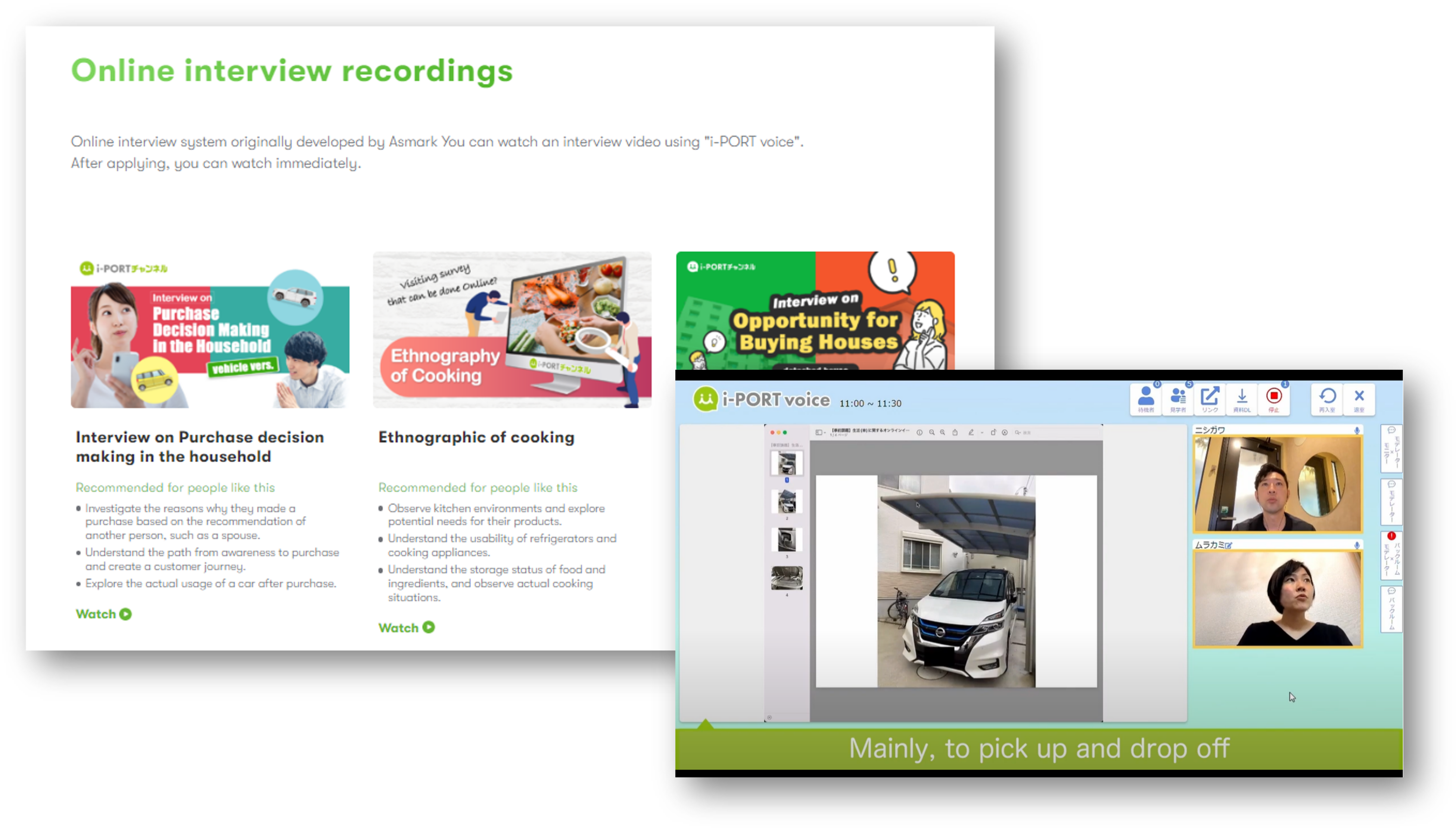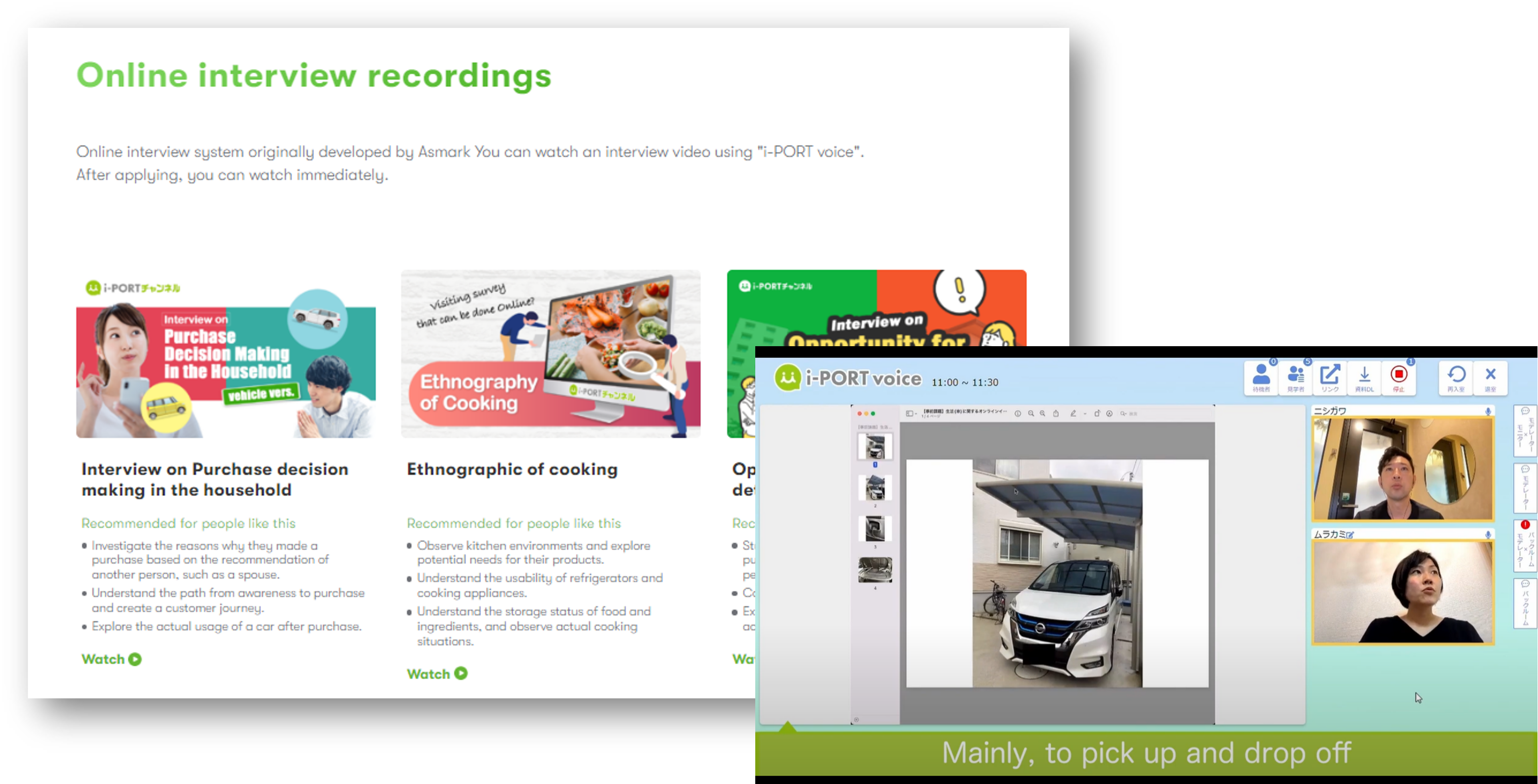 今回新たに、国内の自社モニターへ独自開発のオンラインインタビューシステム「i-PORT voice」を用いて行った、定性インタビュー動画を英語版にて各種公開しています。公開する定性インタビューは、デプスインタビューによるエスノグラフィ(行動観察)調査を中心に、定性的観点でのインサイト抽出にお役立て頂けるシリーズで主に構成されています。コンテンツは随時公開予定!今後はグループインタビューやZ世代を中心に行うインタビューもお届けしていきます。