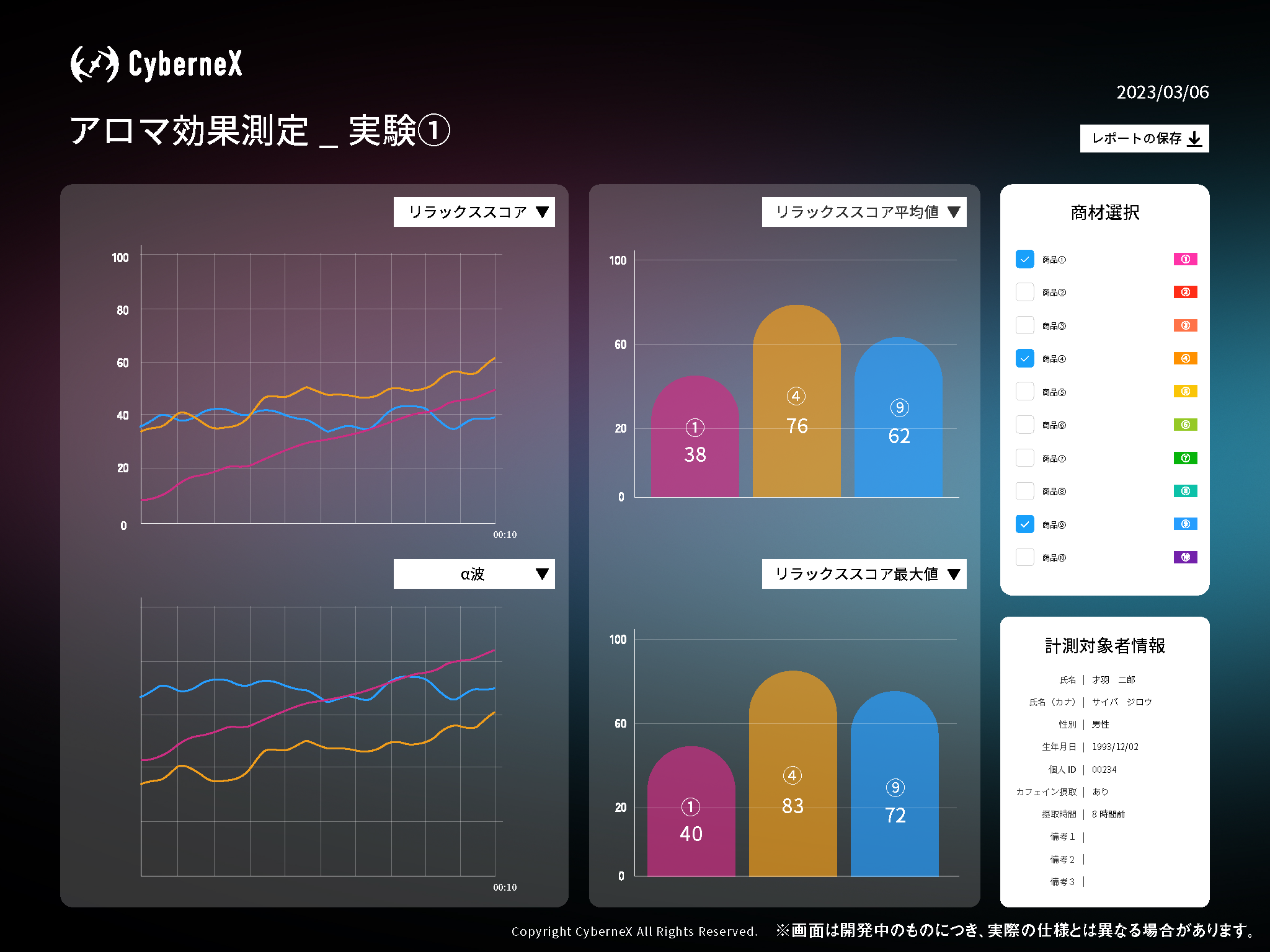 この度、CyberneXはリラックス・癒しを訴求する商材を扱う事業者様向けにそれらの商材がもたらすリラックス度を脳波から定量的に可視化し、比較できる「α Relax Analyzer(iOSアプリケーション)」を4月10日(月)より提供開始いたします。