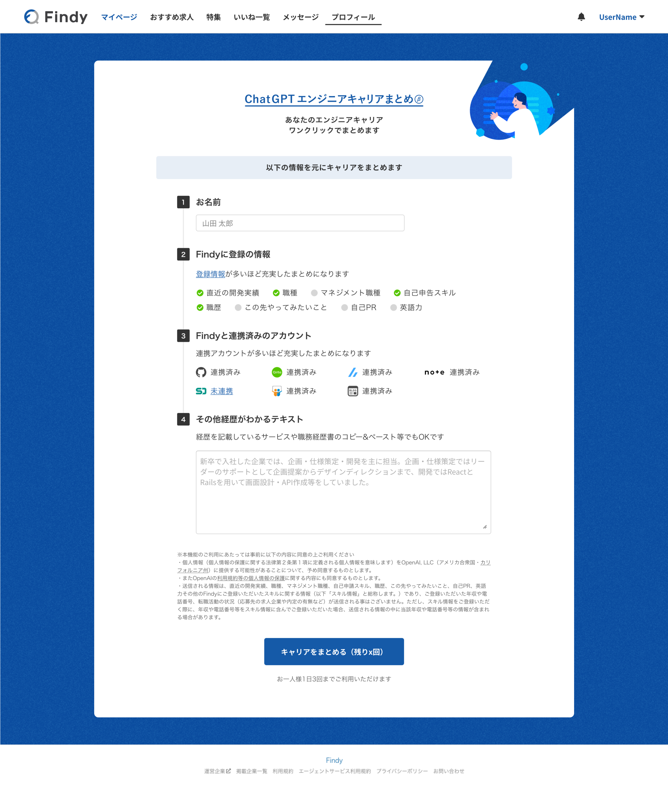 ChatGPTエンジニアキャリアまとめ(β):https://findy-code.io/openai-career-summarize/lp