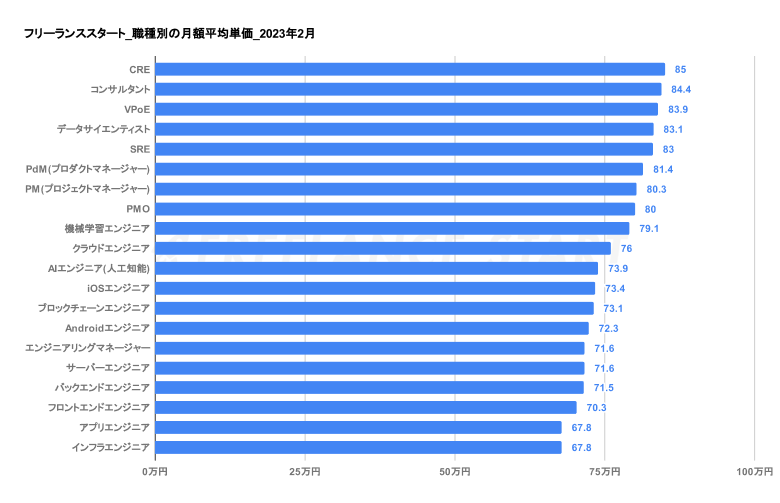 ▼『【2023年2月】フリーランス市場月額単価の動向』の詳細:https://freelance-start.com/articles/1045