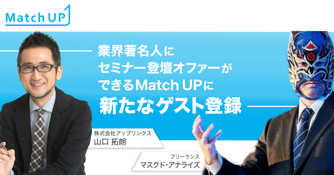 当社は、国内最大級のオンライン展示会「ITトレンド」や、ビジネス動画プラットフォーム「チラヨミ」を通して、多くの企業様、業界著名人の方とのお取引があり、自社のマーケティングノウハウを活かし、このような課題を解消でするため、業界著名人にセミナー登壇オファーができるマッチングプラットフォーム「Match Up」の提供を開始いたしました。