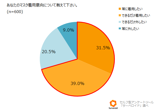 マスクの着用について、「常に着用したい」「できるだけ着用したい」と回答した人が70.5%という結果になり、今後もマスクを着用し続けたいが多数派となりました。