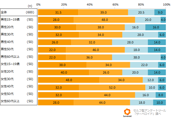 本調査を転載・ご利用の際は、「セルフ型アンケートツール「Surveroid(https://surveroid.jp/)調べ」の記載をお願いいたします。