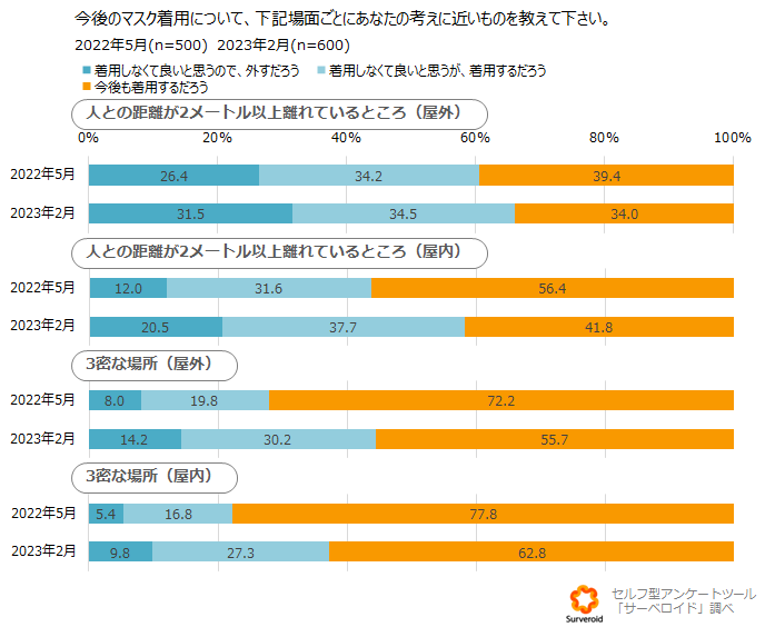 3月13日以降マスク着用は「個人の判断に委ねる」と政府から発表がありましたが、適用前のマスク着用に対する意向はどのようなものなのでしょうか。