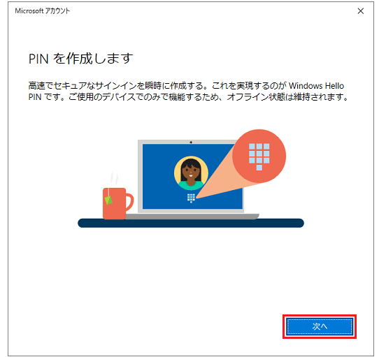 まず、PINコードについてご説明いたします。PIN [Personal Identification Number]とは、暗証番号のことで、自分で選択する一連の数字、または文字と数字の組み合わせのことで、Windows デバイスにサインインするための迅速で安全な方法です。なお、PINはMicrosoft アカウントのパスワードとは別のもので、端末に固有の設定です。