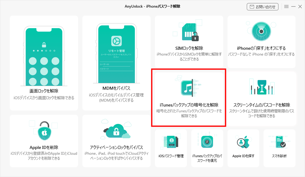 iPhone本体では、「システムデータ」を確認したり、削除したりすることができません。しかし、AnyUnlockの「iTunesバックアップの暗号化を解除」機能を利用すると、iPhoneの「システムデータ」の容量を減らすことができます。