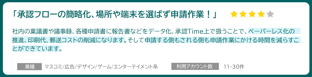 「承認TIME」をご利用中の事業者様からのお声を一部ご紹介