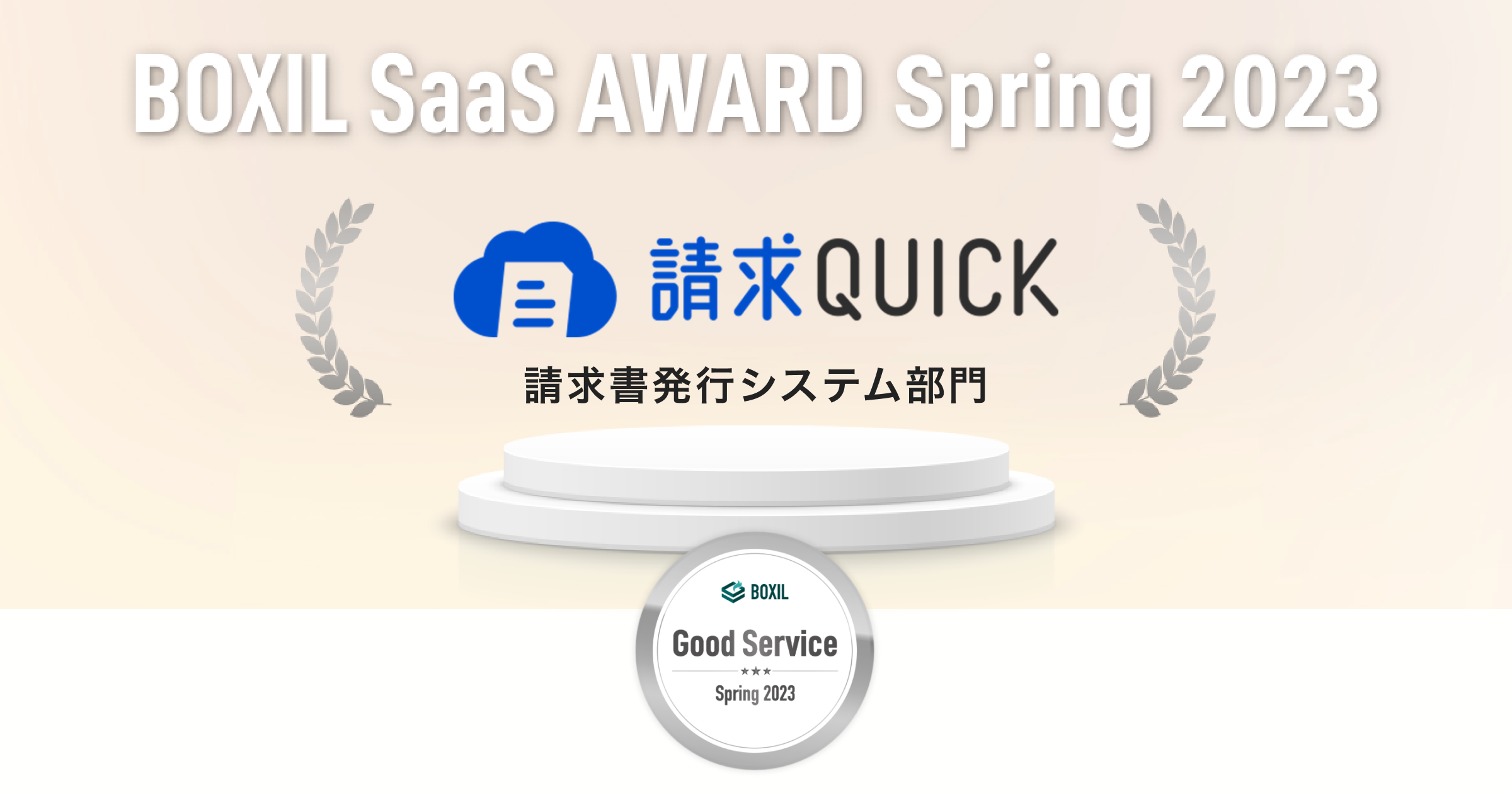 「BOXIL SaaS AWARD(ボクシル サース アワード)」は、SaaS比較サイト「BOXIL SaaS」を運営するスマートキャンプが優れたSaaSを審査、選考、表彰するイベントです。今回の「BOXIL SaaS AWARD Spring 2023」は、2022年1月1日から2022年12月31日までの1年間で新たに投稿された口コミ約14,000件を審査対象としており、「請求QUICK」は請求書発行システム部門で「Good Service」を獲得しました。また、その証となる「Good Serviceバッジ」がスマートキャンプから付与されました。