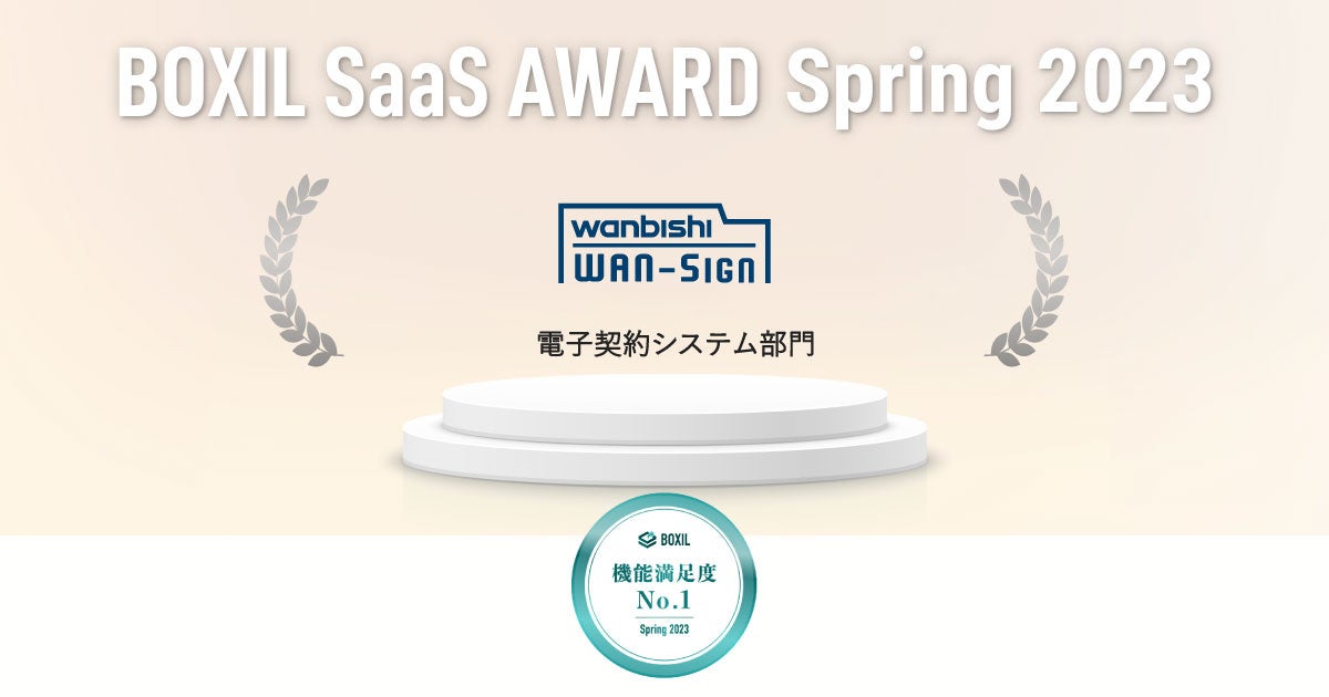 「BOXIL SaaS AWARD(ボクシル サース アワード)」は、SaaS比較サイト「BOXIL SaaS(ボクシル サース)」を運営するスマートキャンプが、優れたSaaSを審査、選考、表彰するイベントです。今回の「BOXIL SaaS AWARD Spring 2023」は、2022年1月1日から2022年12月31日までの1年間で新たに投稿された口コミ約14,000件を審査対象としており、電子契約・契約管理サービス「WAN-Sign」は電子契約システム部門で「機能満足度No.1」に選ばれました。