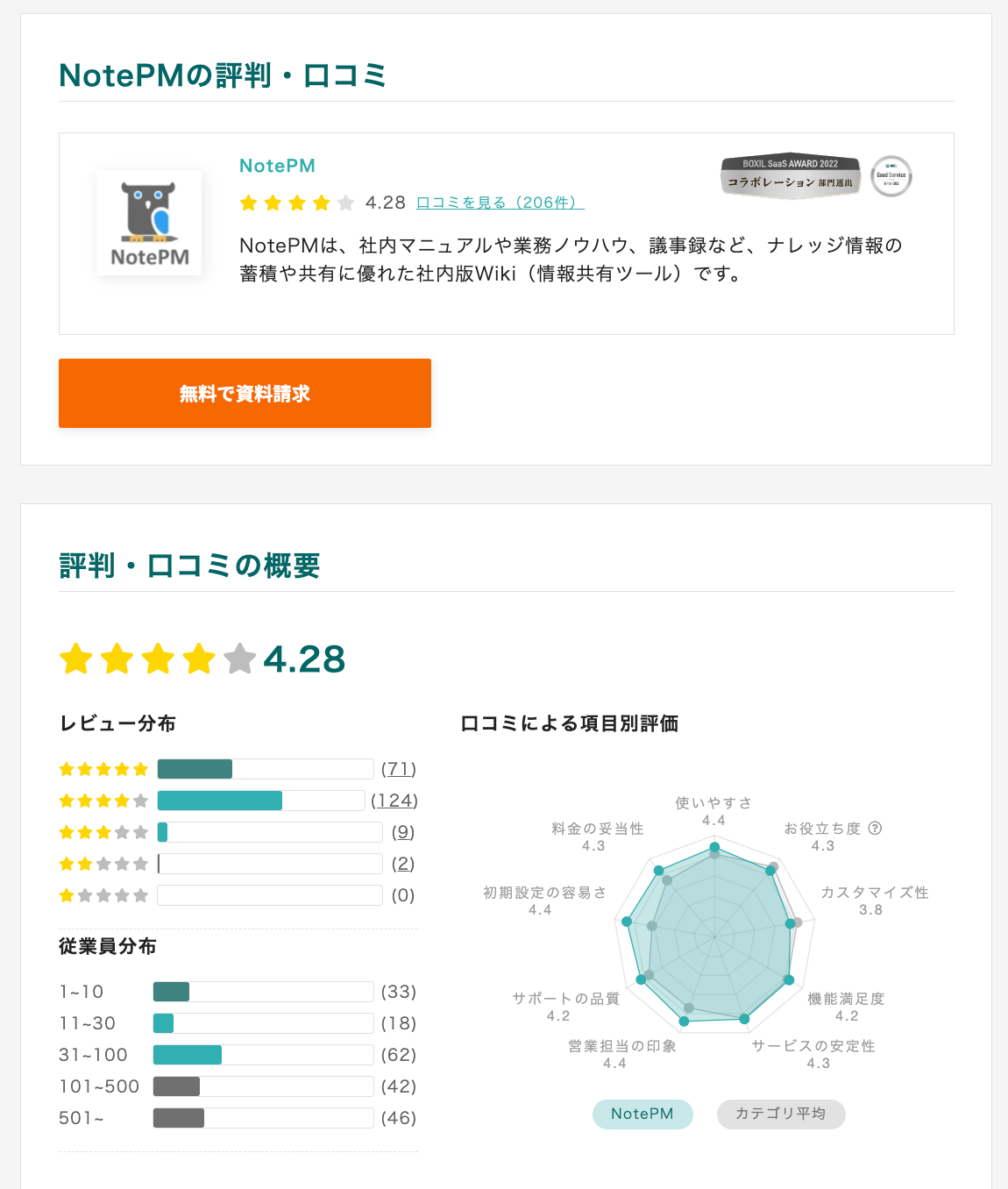 「BOXIL SaaS AWARD(ボクシル サース アワード)」は、SaaS比較サイト「BOXIL SaaS(ボクシル サース)」を運営するスマートキャンプが、優れたSaaSを審査、選考、表彰するイベントです。年1回、SaaSの日を記念して発表される本イベントのほか、Spring、Summer、Autumn、Winterの四半期ごとにも、優れたSaaSが表彰されます。今回「NotePM」は、この「BOXIL SaaS AWARD 2023」と「BOXIL SaaS AWARD Spring 2023」の同時受賞となります。