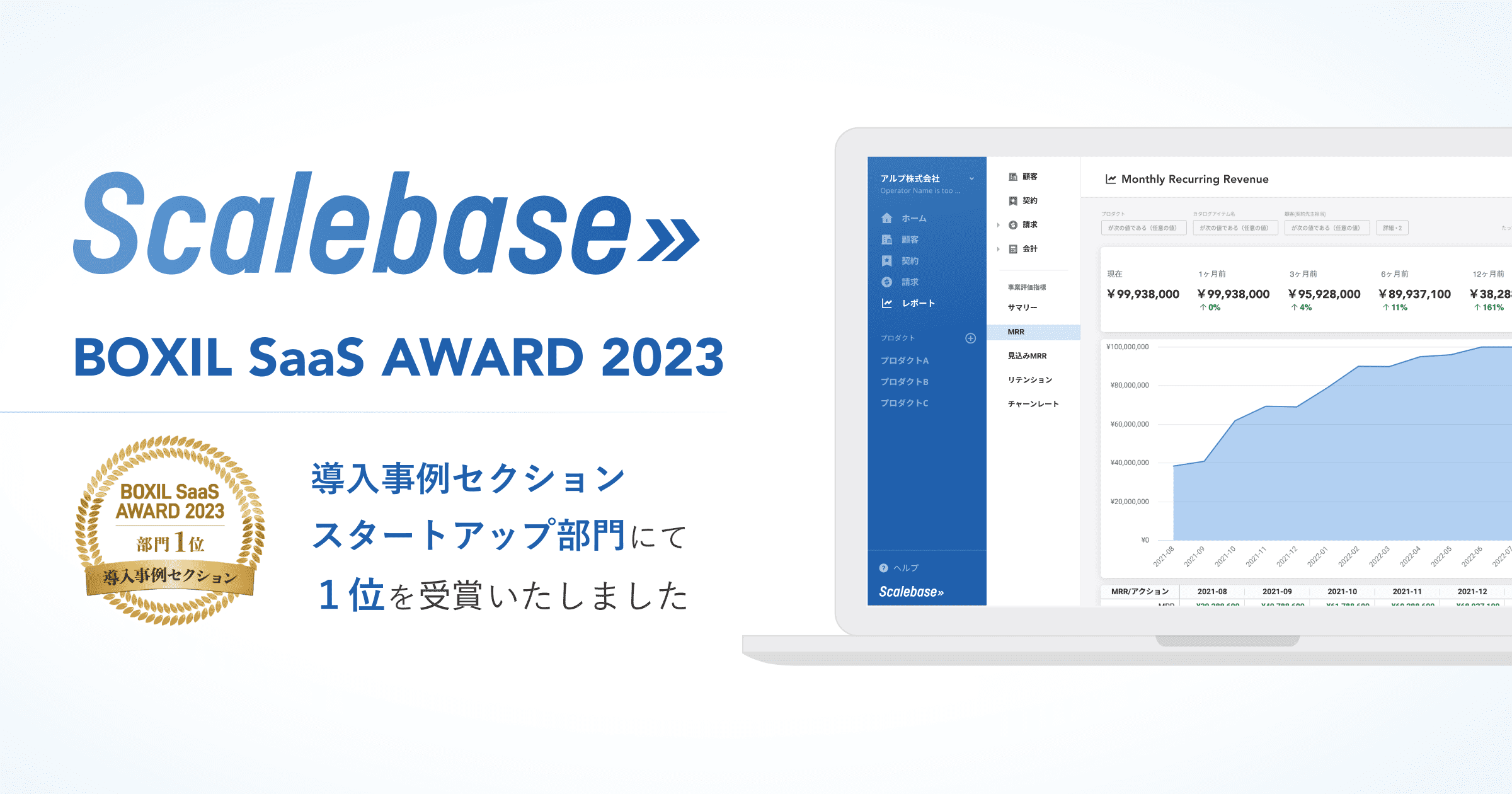 今回Scalebaseは、【スタートアップ企業が事業拡大した際に直面する顧客属性の変化に対して、「請求管理」の側面からプライシング戦略を支え、更なる顧客獲得に繋げた事例】 を高く評価いただきました。