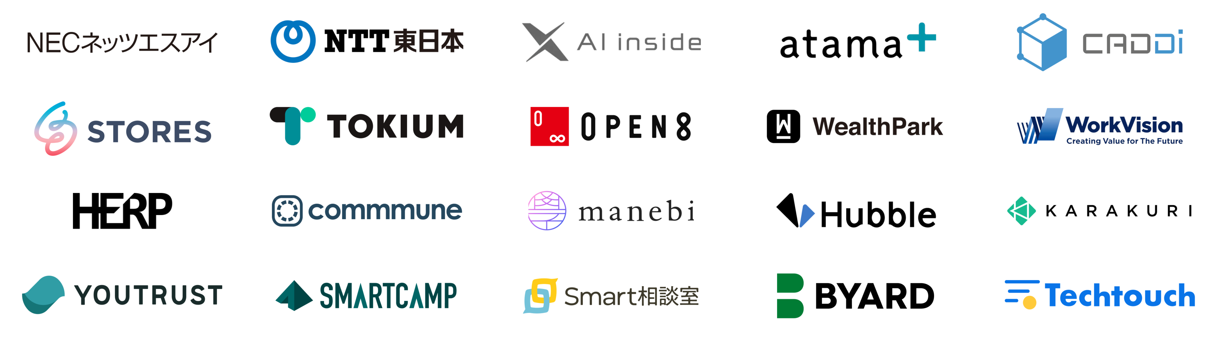 スタートアップ企業のみならず、SaaS企業や大手企業の新規事業、ビジネスモデルを転換して継続課金ビジネスを始める業界など、100社以上に導入いただいています。(以下、2023年3月時点)