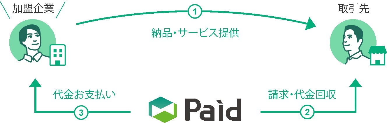 「Paid」を導入することで、加盟企業にとっては請求業務や未入金のリスクがなくなり、取引先企業はキャッシュフローが安定するメリットがあります。決済にかかる負担をなくし、取引だけに集中できる環境を「Paid」は創出しています。