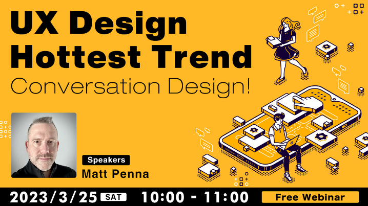 本セミナーでは、「会話型デザイン」において現役のエキスパートとしてご活躍されているマット・ペンナ氏をアメリカからお招きし、会話型デザインの現状と今後、UXデザイナーとして成功する秘訣などついて詳しくお話していただきます。ご興味をお持ちの方は、どなたでもお気軽にご参加ください。