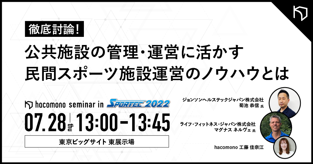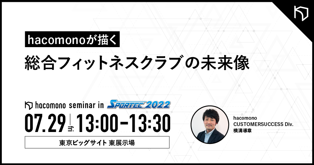 - 7月29日(金) 13:00 〜 (30分)【hacomonoが描く総合フィットネスクラブの未来像】