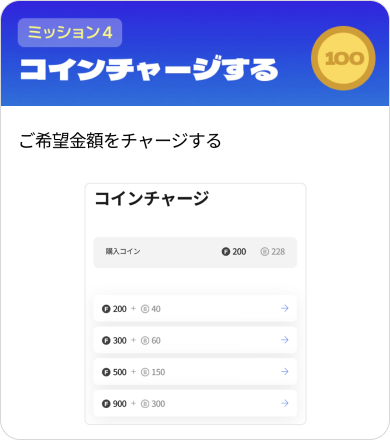 ご希望金額をチャージすると、100ボーナスコインを獲得できます。