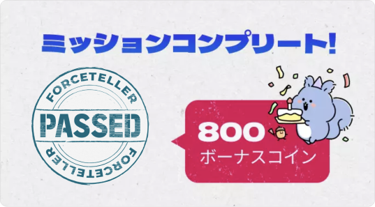 ミッション1〜4クリアの特典200ボーナスコインを合わせて、合計1,000ボーナスコインをGETすることができます。