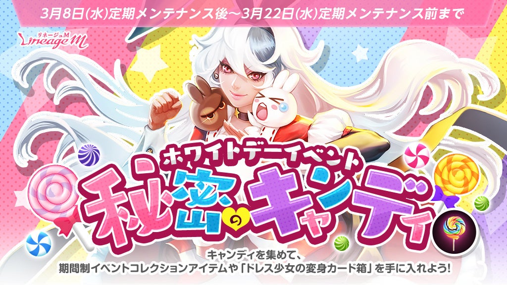 期間中、ゲーム内「ダンジョン」>「試練ダンジョン」にイベント試練ダンジョン「ドレス少女の宝箱」が登場するホワイトデーイベント「秘密のキャンディ」が開始しました。