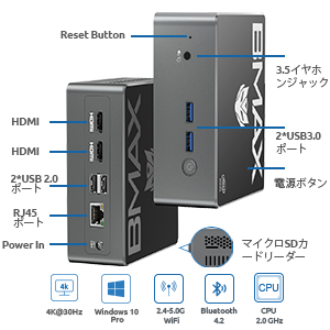 【OS】Windows 11 Pro 64ビットプリインストール このミニPCは、14nmプログラムルールCeleron N4020Cプロセッサー(最大ターボ周波数2.8GHz)とUHD Graphics 600 GPUを搭載しています。