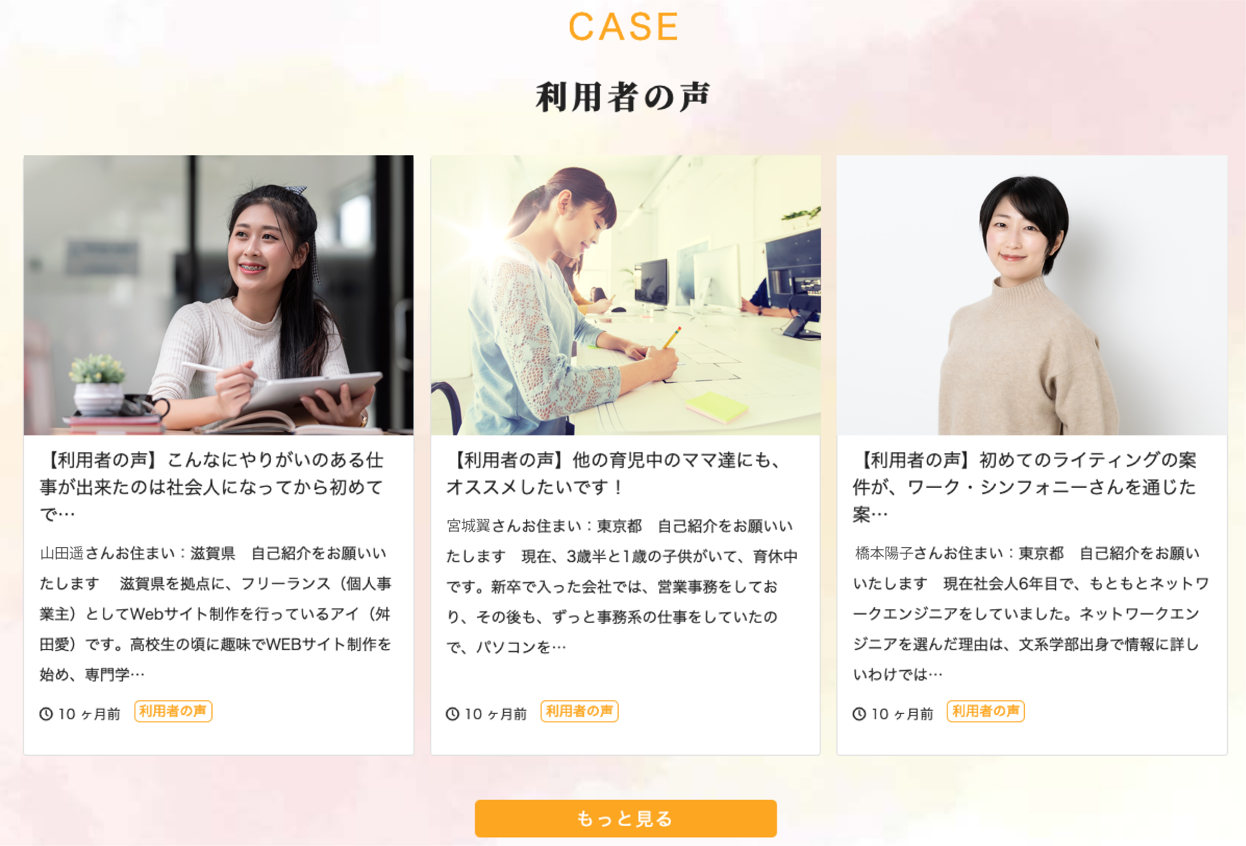専門としている職種も多様で、営業事務やエンジニア、ライターなど多岐にわたります。