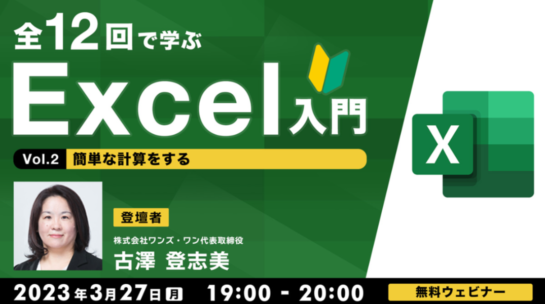 第1回「Excel概要と基本操作」に続き、第2回のテーマは「簡単な計算をする」です。PC&IT講師として20年以上の経歴を持つ株式会社ワンズ・ワン代表取締役の古澤 登志美氏にご登壇いただき、数式の入力・編集の仕方についてわかりやすく解説していただきます。Excelの機能や正しい使い方、簡単に結果を表示する方法など、改めて学んでみませんか?
