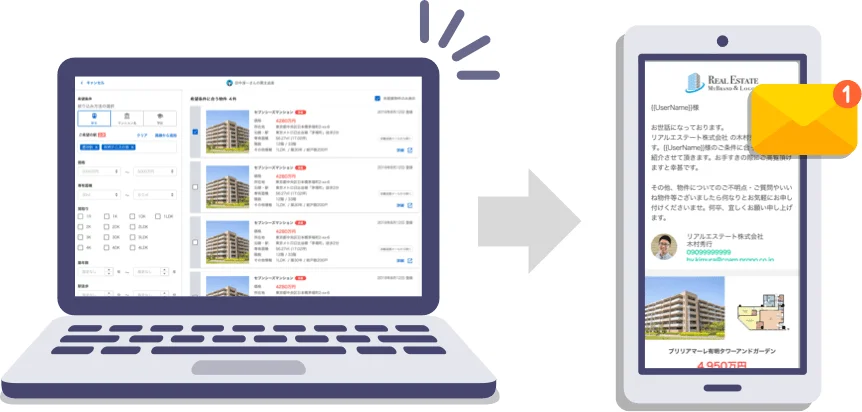 - 購入顧客への物件提案(最新物件の検索、帯がえ、メール作成)作業に時間と手間がかかりすぎる