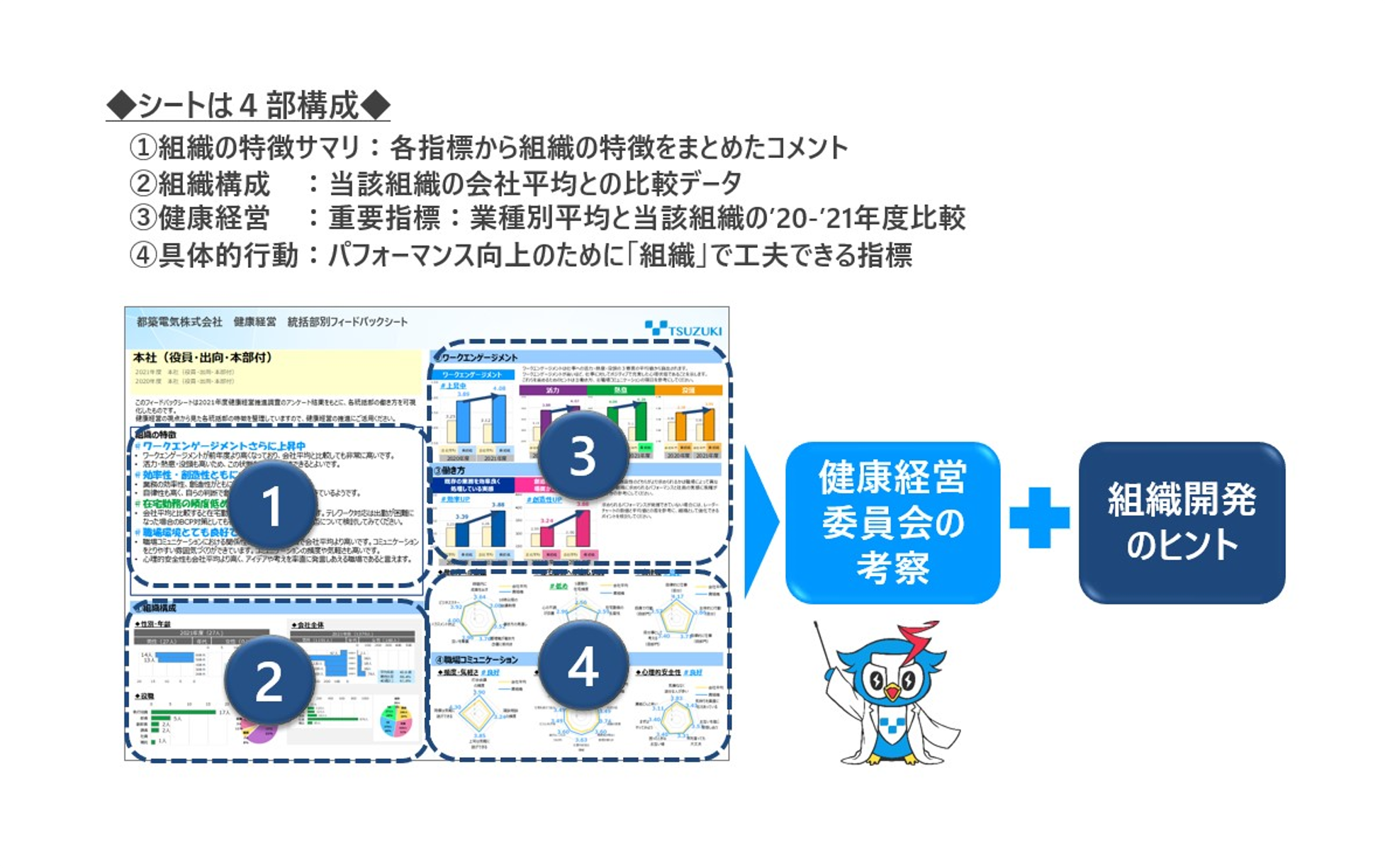 今年度の新たな取り組みとして「組織別ポジティブ・フィードバック」を実施しました。全37組織に対し、データ分析結果からわかる「昨年対比で良くなったところ」や「伸びしろ」を中心に、ポジティブな表現でフィードバックするものです。