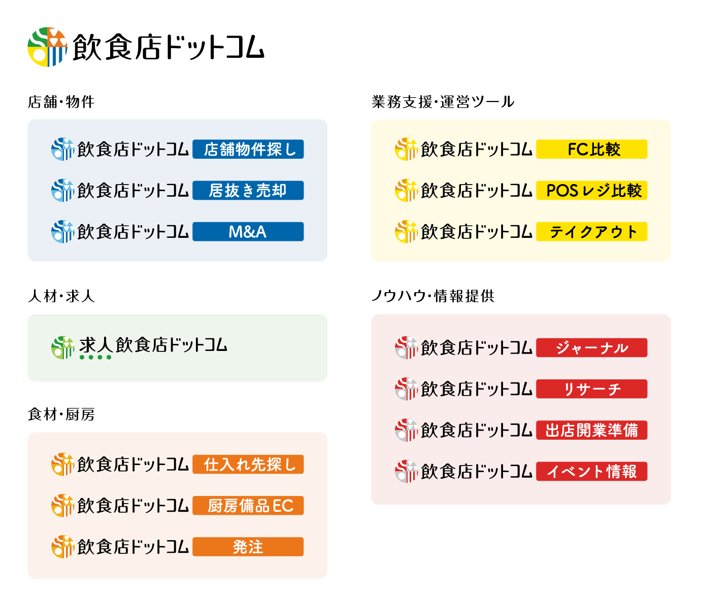 飲食店経営・運営を支援するプラットフォーム「飲食店ドットコム」の各プロダクトロゴも、順次、変更してまいります。