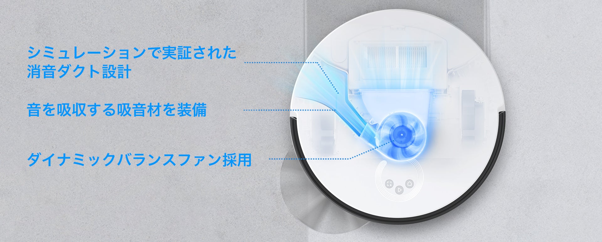 騒音を抑えるように設計された消音ダクトに加え、吸音材とダイナミックバランスファンも搭載しており、使用中のノイズを最小限に抑える対策が施されています。*4