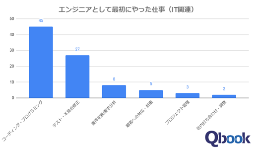 今回、QbookではITエンジニアの方を対象に「エンジニアとして最初にやった仕事は?」というアンケートを行い、その結果をまとめましたのでご紹介いたします。これからITエンジニアとして働き始める方や新しい環境で働かれる方は、ご参考までにアンケートの結果をご覧ください。