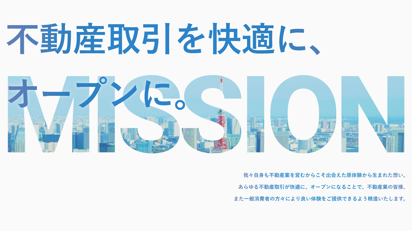 「不動産取引を快適に、オープンに」をミッションに掲げ、皆様の不動産取引体験(PDX※)の向上を目指し日々精進してまいります。