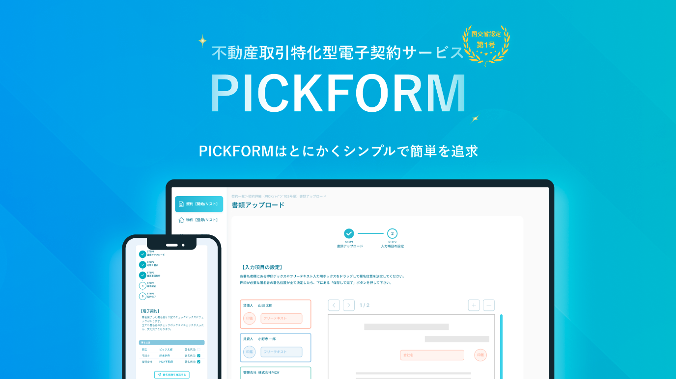 株式会社PICKが提供する不動産取引に特化した電子契約システムです。
