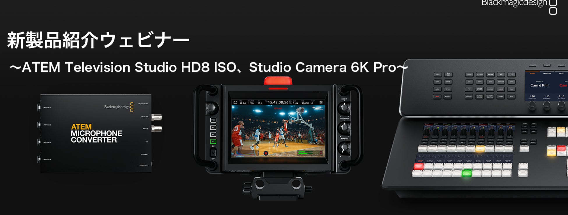 ATEM Television Studio HD8、ATEM Television Studio HD8 ISO、Blackmagic Studio Camera 6K Pro、Studio Camera 4K Pro G2、ATEM Microphone Converterの新製品について、実機デモを交えながらをウェビナー形式で開催致します。