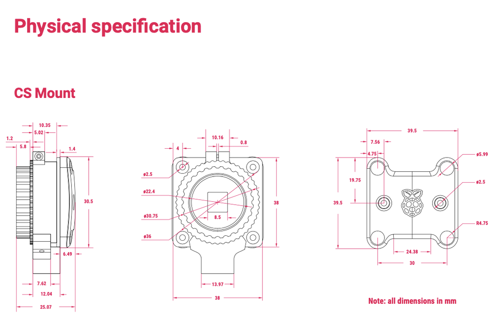 1.6MP Sony IMX296 センサを搭載しており、Raspberry Pi HQ Cameraと同じ C/CS マウントのレンズと互換性があります。また、3.45μm × 3.45μm と大きなピクセルサイズが高い光感度を提供するため、グローバル シャッターカメラは短い露出時間 (適切な照明で 30μs 程度) で動作でき、高速写真撮影に向いています。