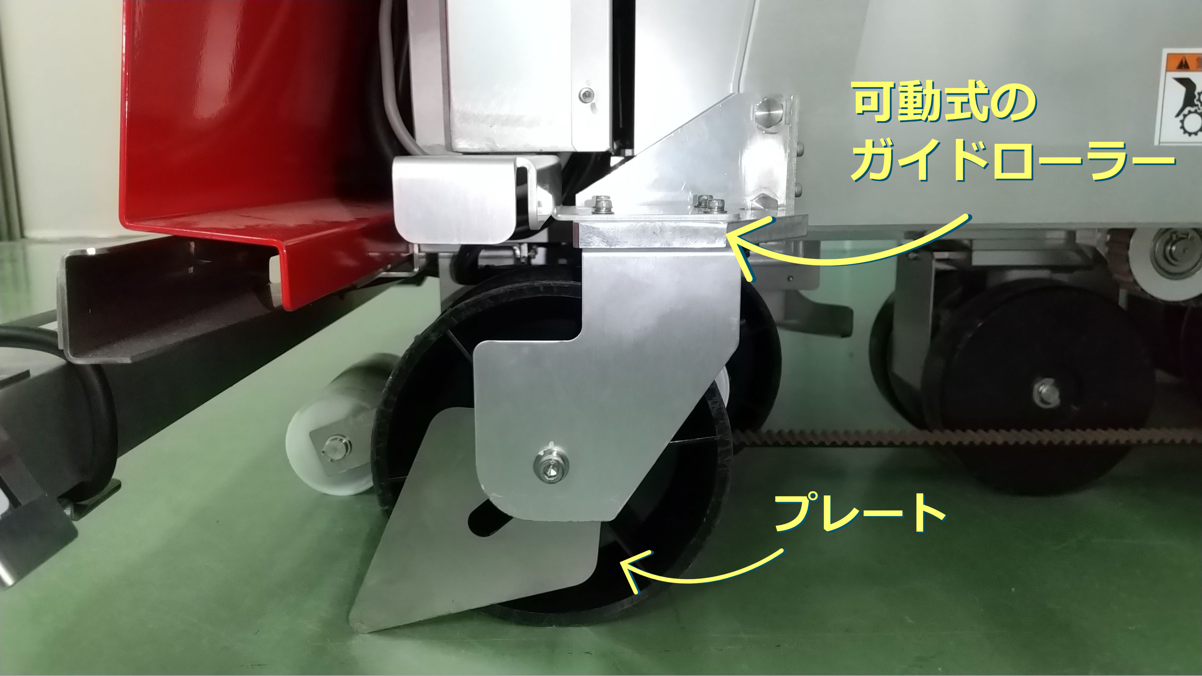 そこで今回は、本体車輪部分に可動式のガイドローラーとプレートを搭載しました。これにより、車輪が鉄筋から浮きづらくなり鉄筋からの脱線リスクが低減します。