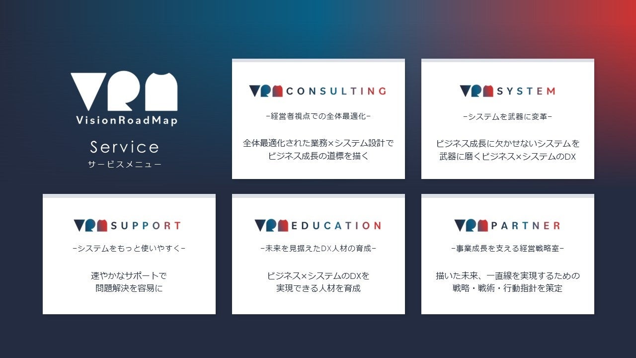 会社の「今」と「未来」に向かって目指す方向性を把握した上で、それにあったシステムを導入し、武器に変革するために伴走するサービスです。