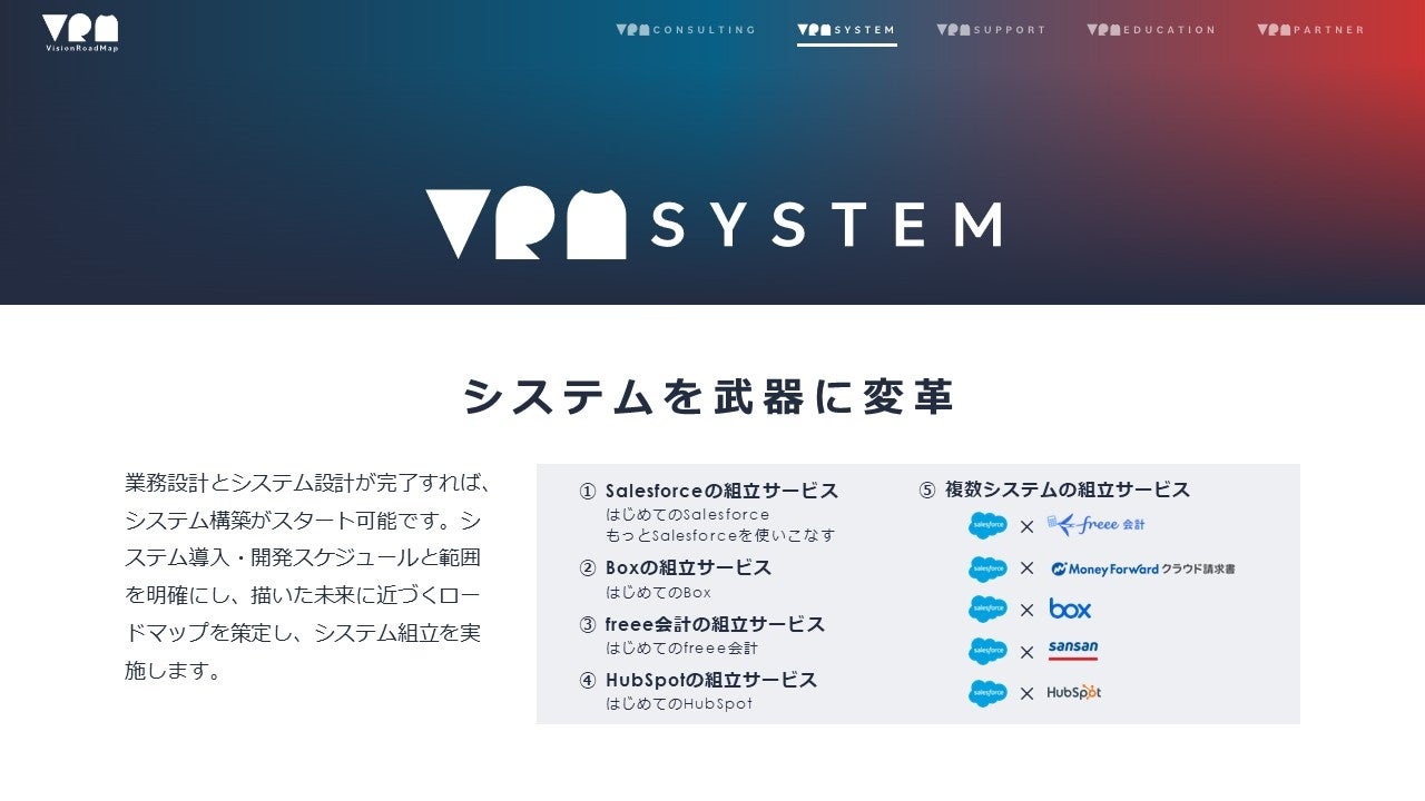 会社の「今」と「未来」に向かって目指す方向性を把握した上で、それにあったシステムを導入し、武器に変革するために伴走するサービスです。