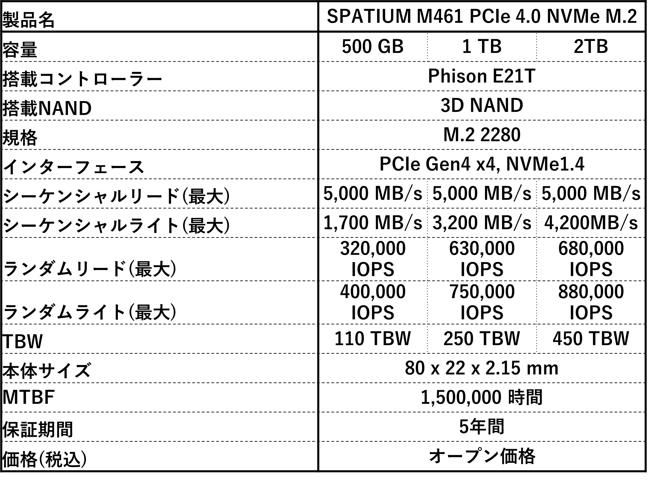 【SPATIUM M461 PCIe 4.0 NVMe M.2 シリーズの主な特徴】