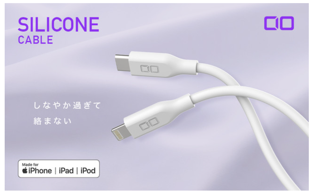 しなやかなシリコン素材&急速充電ケーブル『CIO-SL30000』シリーズは肌触りに優れた柔軟なシリコン素材ながらも、30000回の折り曲げテストをパスするなど高耐久かつ急速充電に対応した新感触の充電ケーブルです。