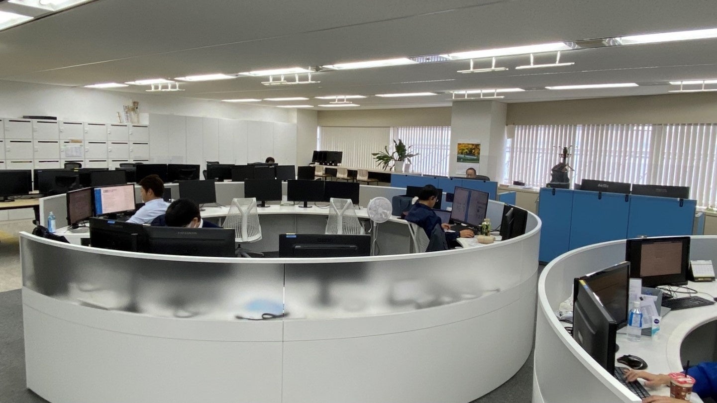 テレワーク率8割、出社しても対面にならないようなレイアウト