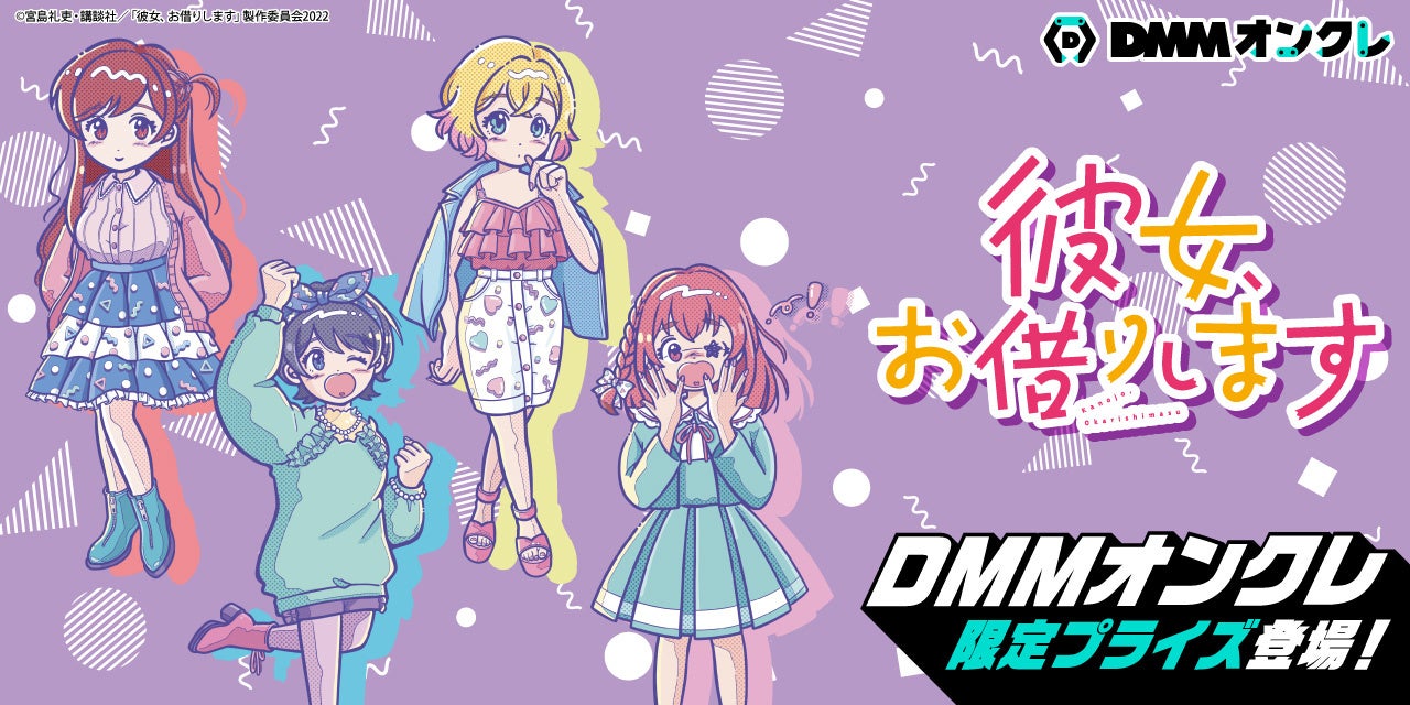 2023年7月から第3期が放送される、「週刊少年マガジン」連載中の大人気ラブコメが原作のTVアニメ「彼女、お借りします」から、DMMオンクレオリジナルプライズとしてラウンドクッション、フルカラープリントTシャツ、アクリルスタンド、マウスパッドの4アイテムが登場します。