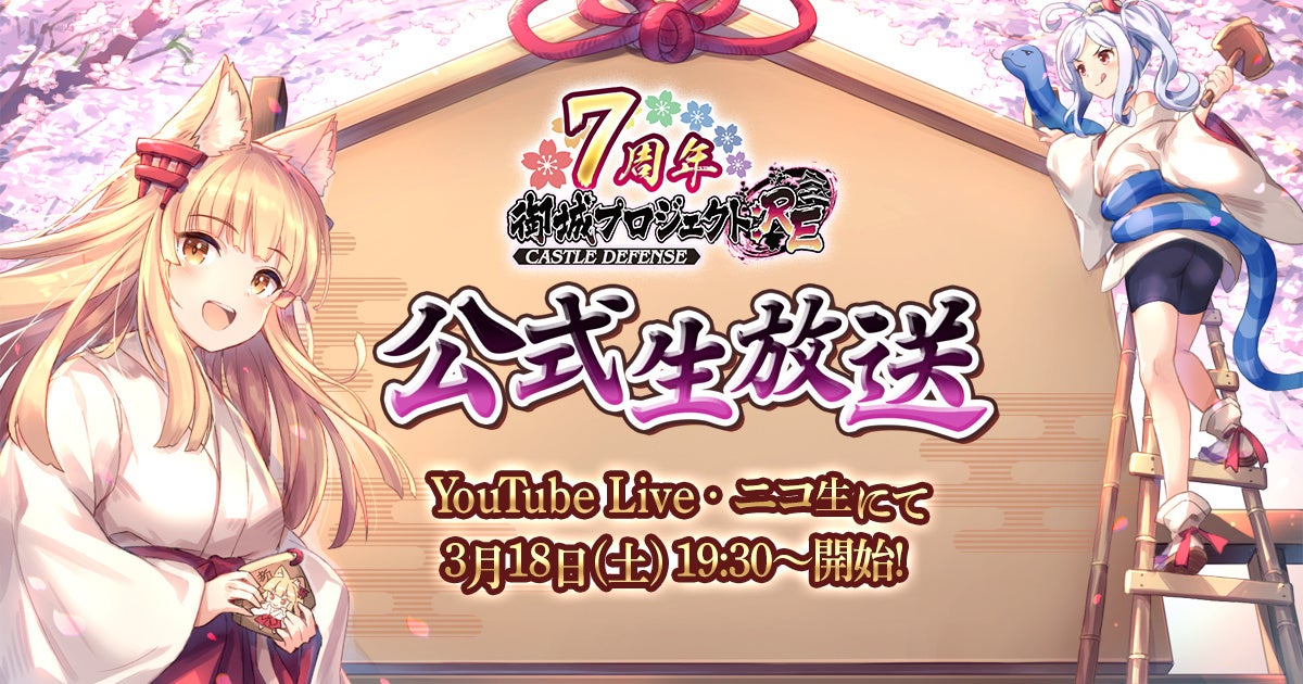 7周年記念の城プロ:RE公式生放送では、御城解説をはじめ、事前アンケート結果や運営しか知らないデータで城プロ:REを振り返るコーナーや城プロ:REにまつわるクイズ、出演声優様にアフレコしていただくコーナー、今後のアップデート情報等の予定発表などなど盛りだくさんでお届けします。