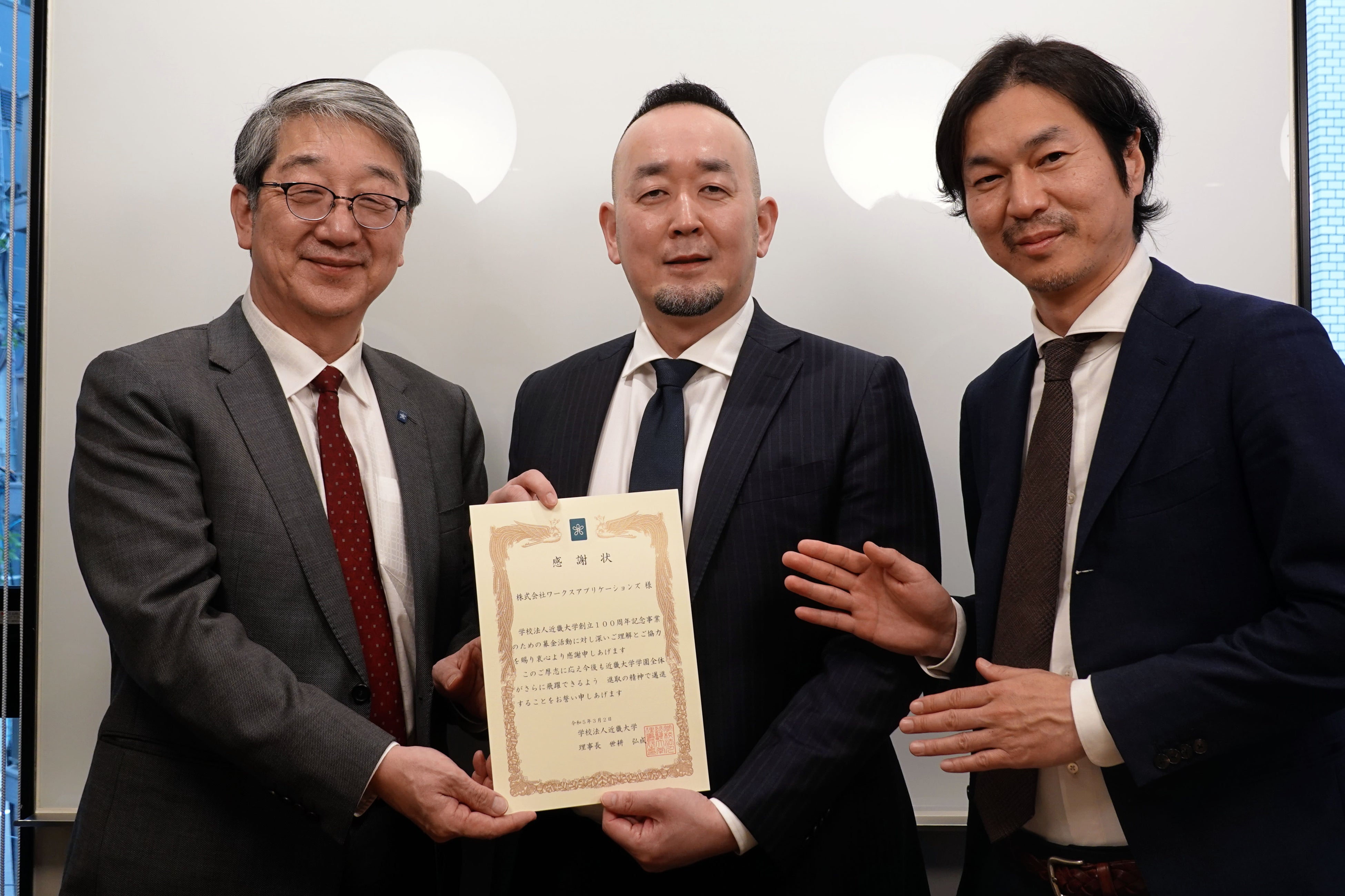 国内有数規模の総合大学である近畿大学は、2025年に創立100周年を迎えます。「常に革新的である」、「社会の役に立つ」、「期待され応援される」を行動指針とし、キャンパス施設整備や医学部・近畿大学病院移転などの100周年記念事業を計画中です。WAPとしても、記念事業の趣旨のほか、「実学教育」と「人格の陶冶」という建学の精神に大いに賛同し、大学の寄付の呼びかけに応じる運びになりました。