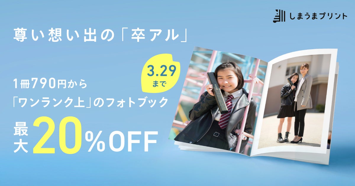 しまうまプリントでは、想い出の総まとめに皆さまの1年を形に残すお手伝いとして、 フォトブックの「スタンダード&プレミアムハード」対象で最大20%OFFキャンペーンを実施中です!