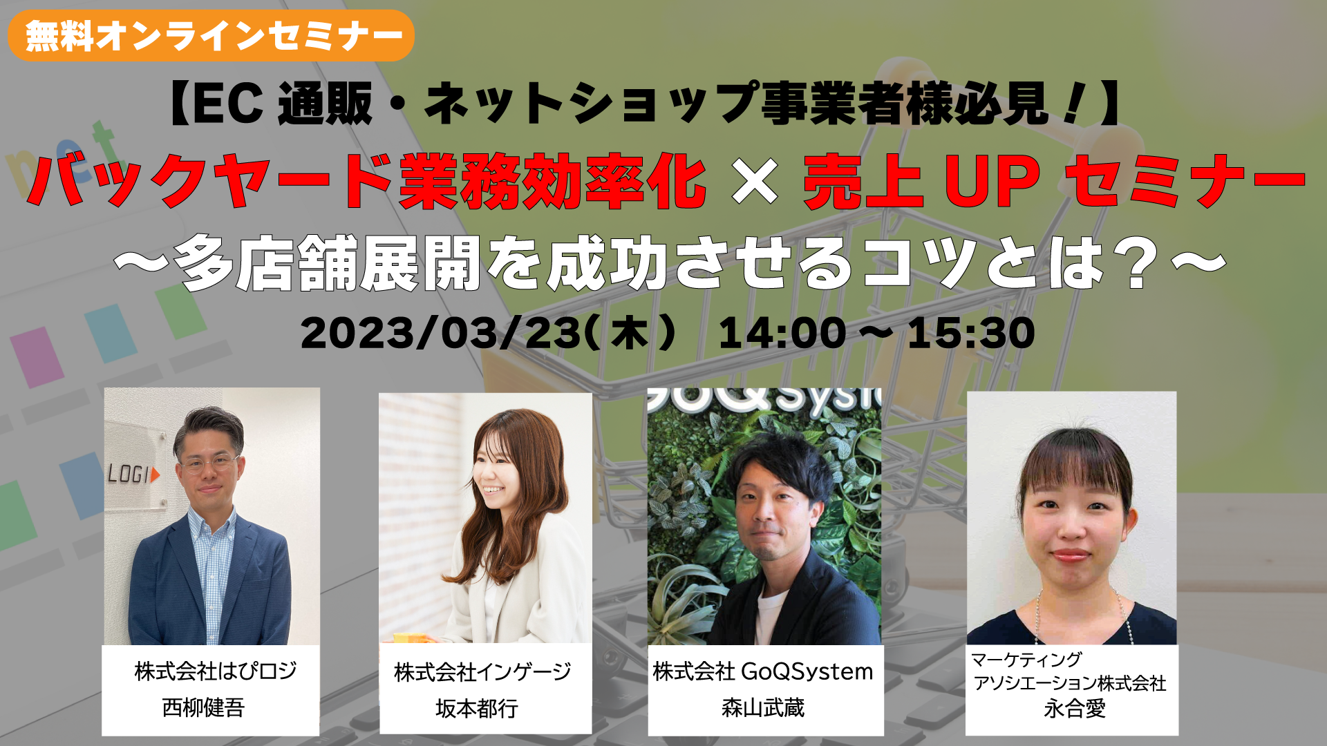 今回のセミナーでは、ECサイト・ネットショップの運営をサポートする4社で、業務効率化を叶えるツール・運営代行導入によって効率化・利益拡大させた事例をご紹介。