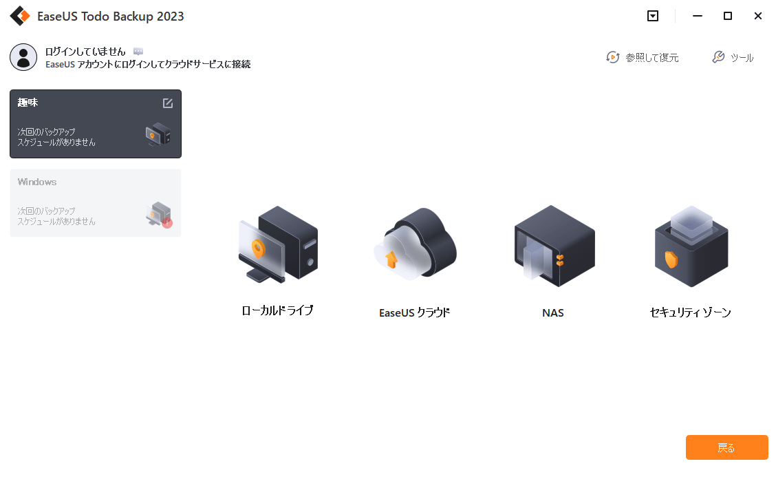 ステップ3.そしてローカルドライブ、EaseUSクラウド、NAS、セキュリティゾーンの4つから、バックアップの保存先を1つ選択します。
