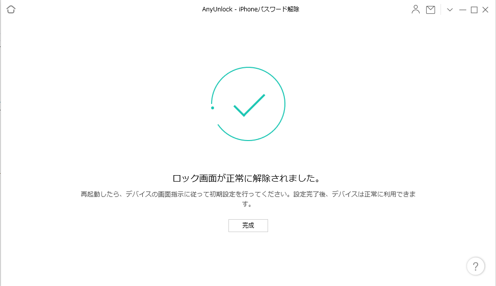 Step 5.次の画像が表示されたら、ロック画面が正常に解除されたとのことです。「完成」をタップするだけでいいです。
