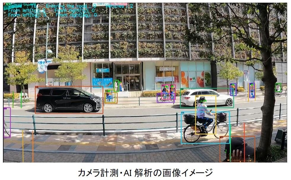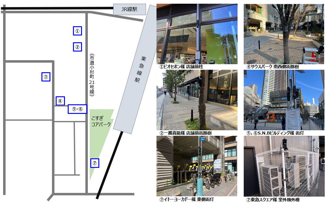 - 武蔵小杉駅周辺交差点部における、自動車・歩行者・自転車等の通行状況を計7台のカメラで計測